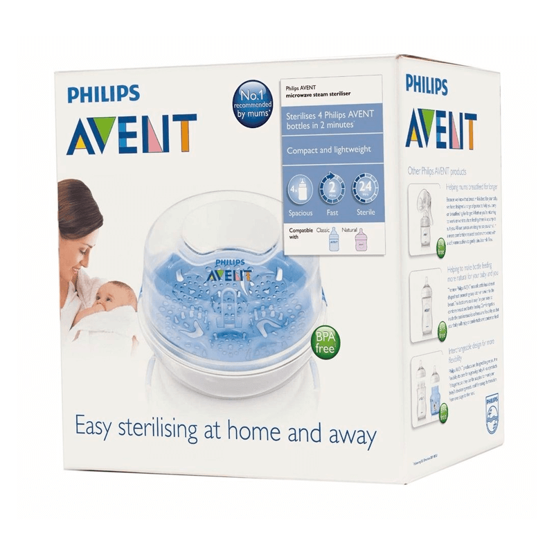 El Esterilizador de Biberones a vapor para microondas de Philips Avent será de gran ayuda para la alimentación de su bebé. Este esterilizador a vapor para microondas tiene un diseño ligero y compacto. Puede esterilizar 4 biberones en 2 minutos. Diseñado en materiales libres de BPA.