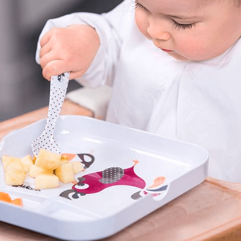 Un regalo súper lindo para el nuevo bebé, Babymoov ha elaborado un Set de vajillas hechas de Melamina con todo lo necesario para la hora de comer. El set de vajillas viene compuesto de 1 plato, 1 cuenco, 1 taza, 1 cuchara y 1 tenedor. Linda caja de regalo, diseño original, material libre de tóxicos, plato seccionado para que distribuir los tipos de alimentos, con ranura para engachar cubiertos, vaso con abertura para que el bebé tome líquidos sin derramar, cubiertos con reborde, todo los utensilios son resistentes a caídas y vienen divertidamente decorado con personajes.