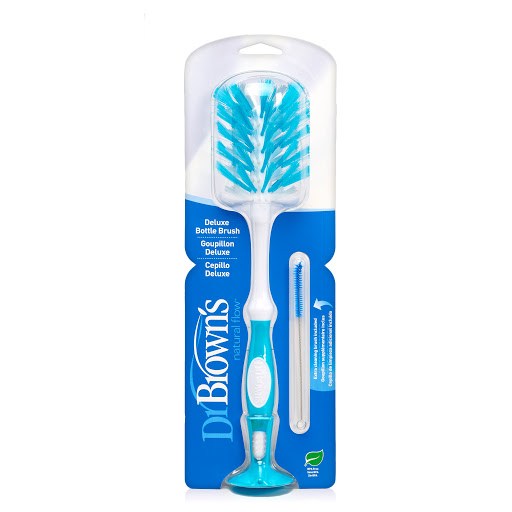 - Déle a su biberón Dr. Brown’s una limpieza profunda con el cepillo de biberones y botellas Deluxe Dr. Brown’s. Este cepillo sin BPA presenta un cepillo y una esponja en la parte superior para un lavado eficiente. Los canales Chevron en la base son ideales para limpiar los pezones, y un cepillo de limpieza interior se encuentra convenientemente ubicado en el mango. El cepillo está libre de BPA y fácil de sostener gracias al mango grande y suave.