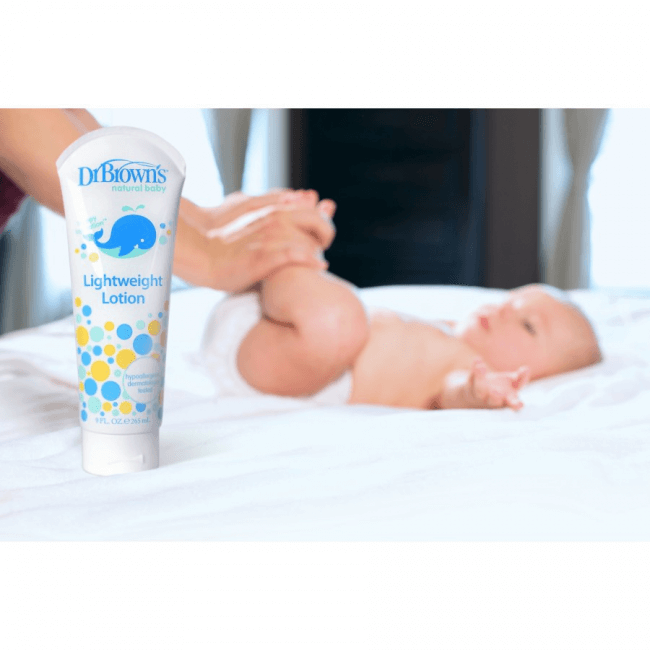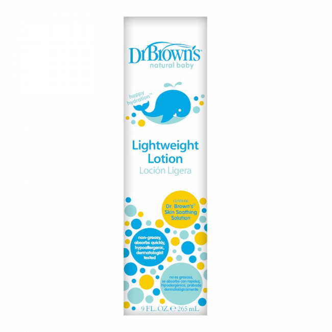 La loción ligera probada por dermatólogos humecta sin la suciedad pesada o grasosa. Con la exclusiva Solución Calmante para la Piel Dr. Brown’s , una infusión hidratante a base de plantas que solo se encuentra en la Línea Natural Baby Skin Care de Dr. Brown’s.