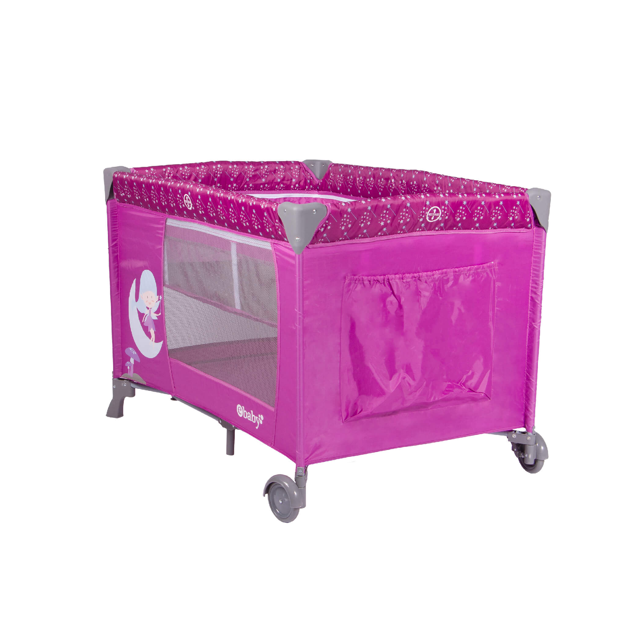 | Puerta con cierre lateral | Bolsillo lateral para pañalero | Llantas con frenos | Incluye tul