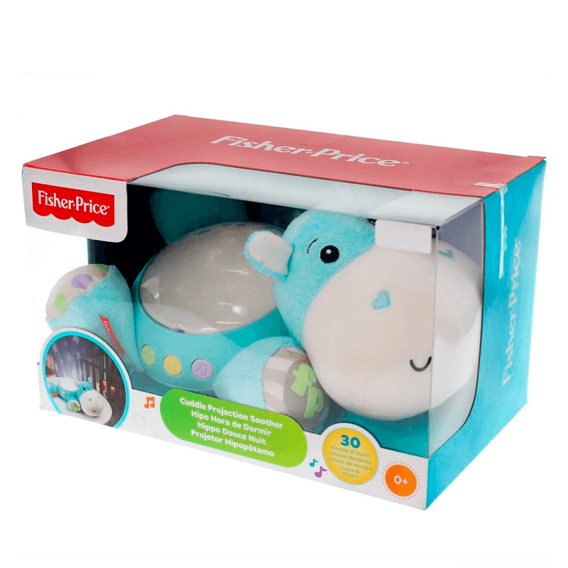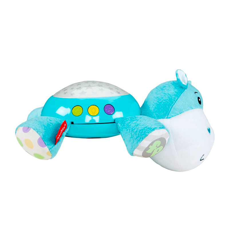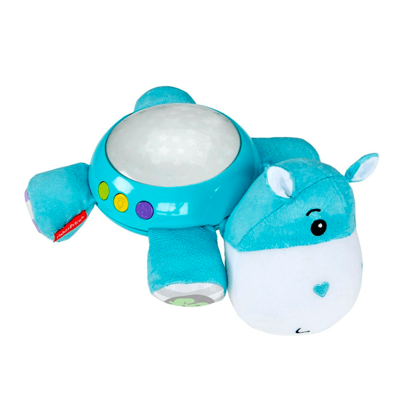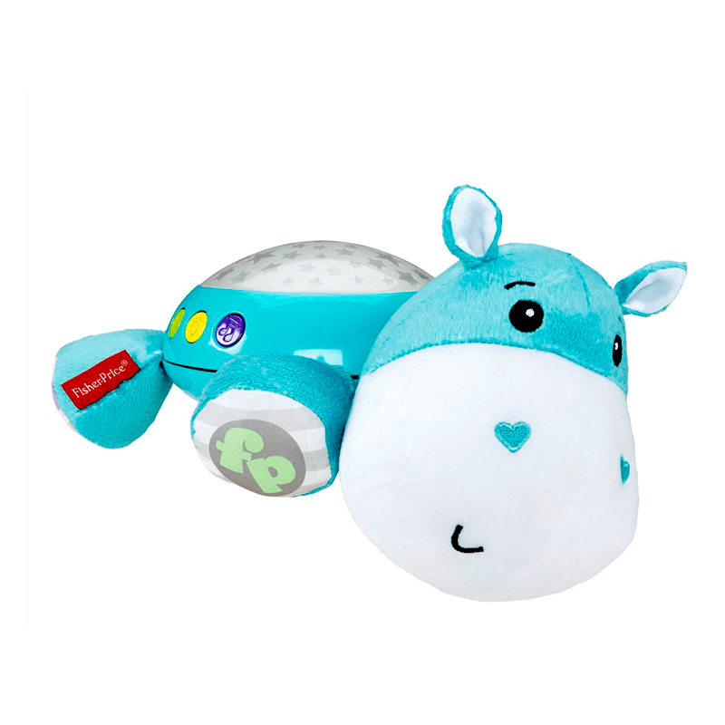 Proyector musical Hipo Hora de Dormir de Fisher Price. Es un peluche y un proyector para tu bebé tiene sonidos de la naturaleza, música y proyecta estrellitas para la hora de dormir. El amistoso hipopótamo cabe en cualquier lado , así que , incluso fuera de la cuna sigue relajando a tu bebé. También podrá ayudar a desarrollar habilidades sensoriales.