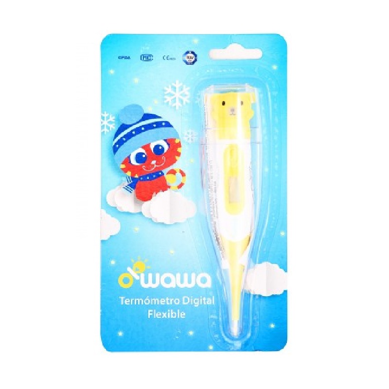 • El Owawa termómetro digital punta flexible, mide la temperatura vía oral o axilar, o rectal.