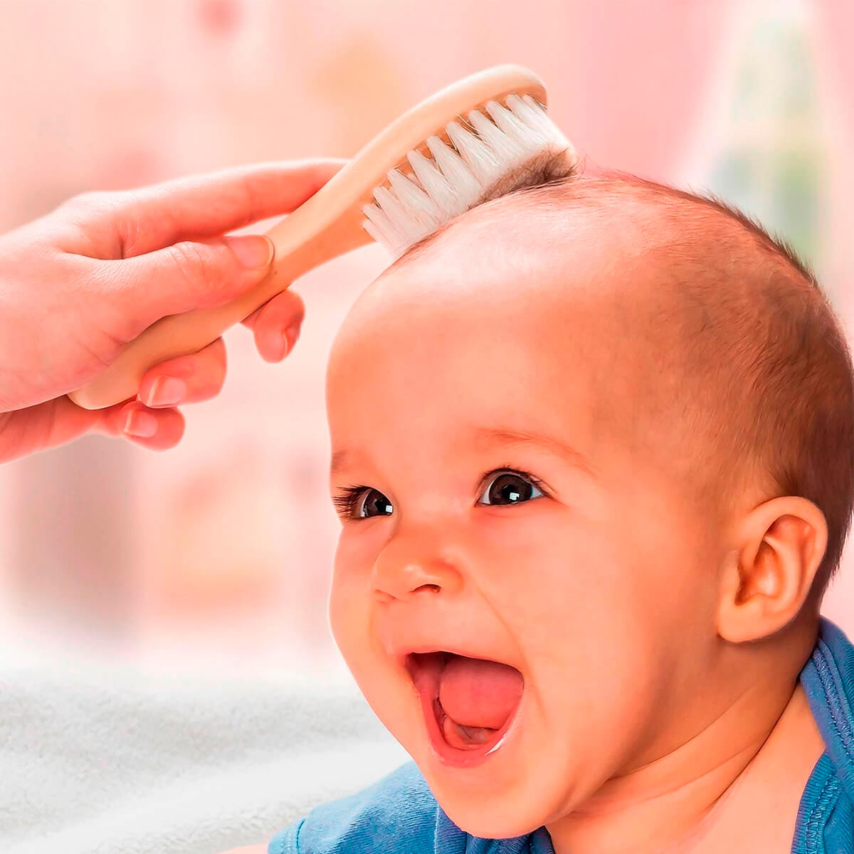 Con cerdas naturales de pelo de cabra, las cuales son extra suaves para el cabello fino y el cuero cabelludo sensible del bebé. Especialmente adecuado para bebés recién nacidos y bebés hasta los 6 meses.