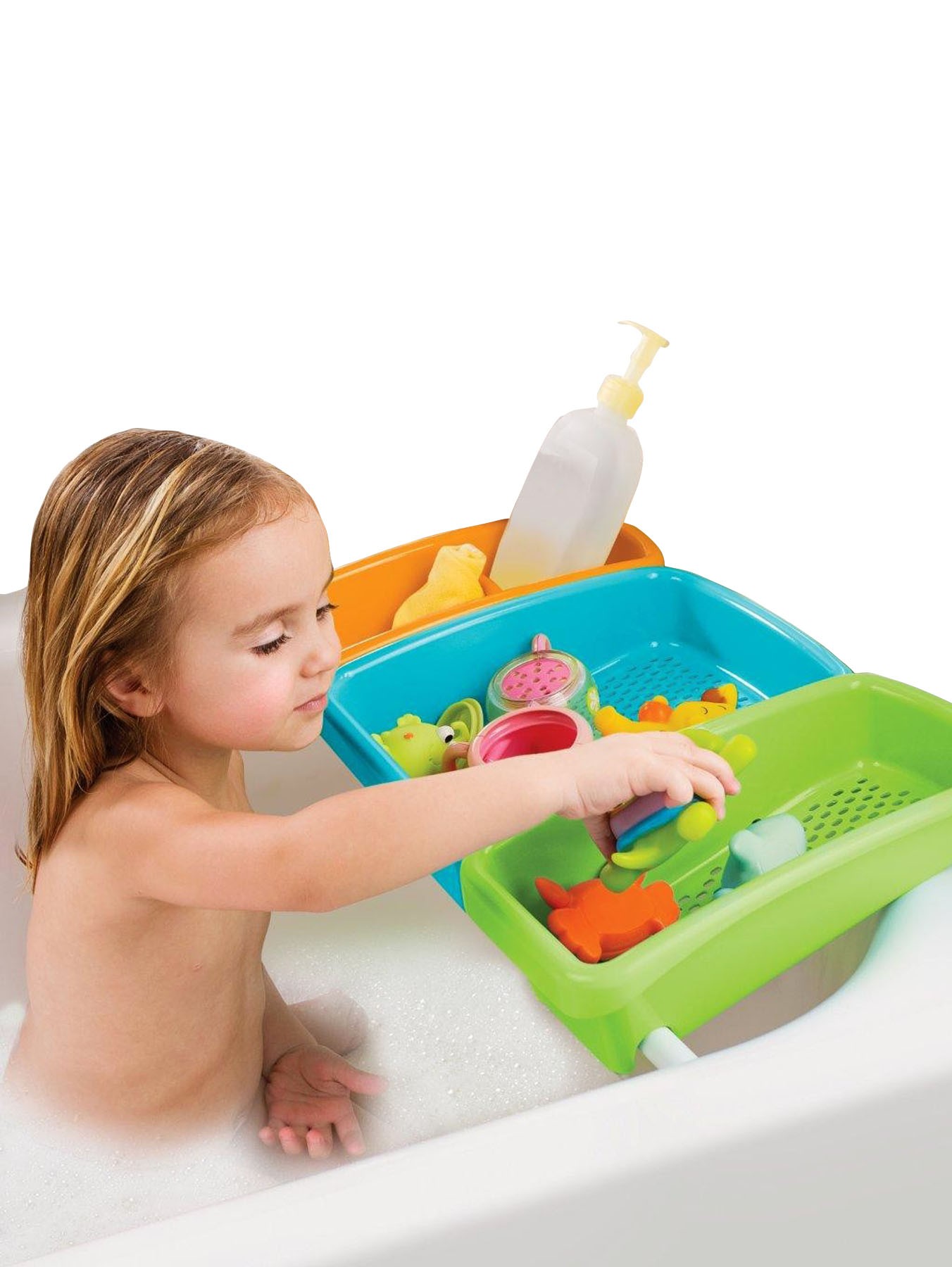 Para la comodidad de los padres y de los bebés, Summer ha elaborado un organizador de baño con compartimientos separados para colocar los accesorios de aseo. El organizador trae orificios de drenaje para que no se acumule el agua y el secado sea más rápido, además, su tamaño es ajustable para la mayoría de tinas.