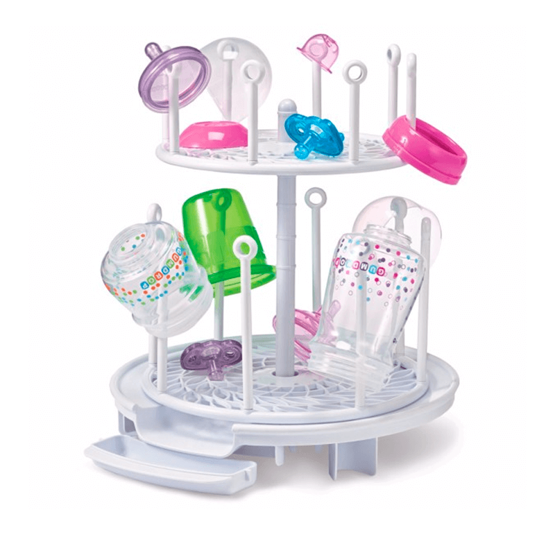 Cuando eres padre te das cuenta que el espacio es cada vez más pequeño por eso el nuevo Spin Stack Escurridor Blanco de The First Years tiene un diseño vertical súper práctico en el que pueden ingresar hasta 16 botellas o partes de los productos que usas.