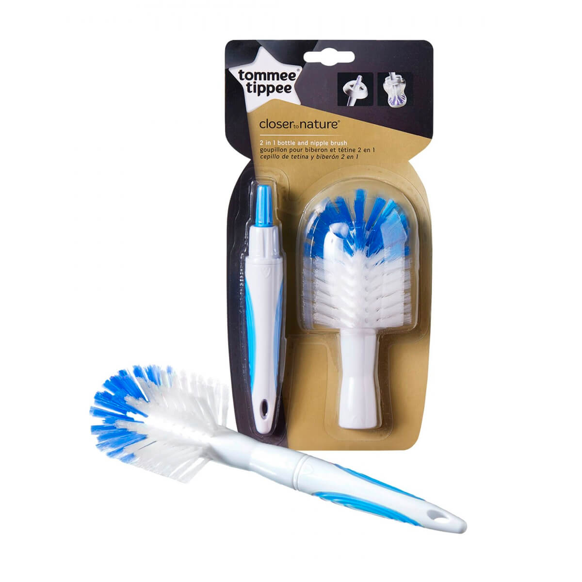 El cepillo de limpieza Tommee Tippee está compuesto de dos piezas para una mejor limpieza de los biberones y tetinas de tu pequeño. Posee cerdas de nylon para una mayor duración, además protege al envase de rayaduras.