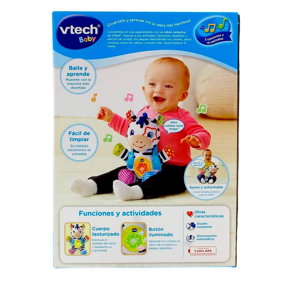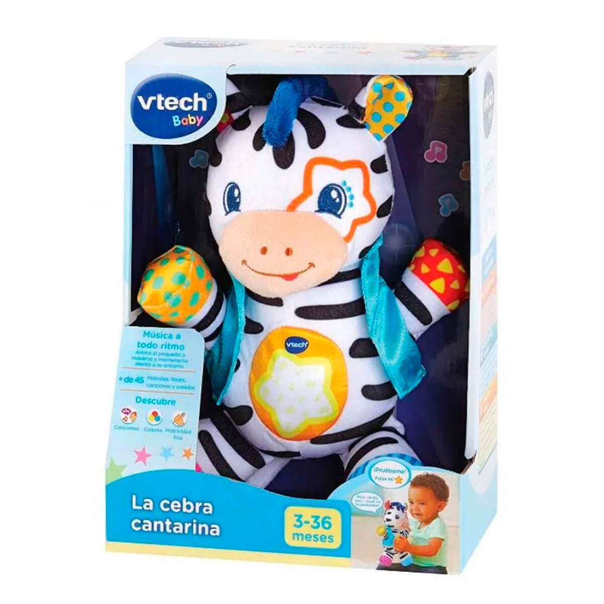 Conviértete en una superestrella con la cebra cantarina de VTech . Gracias a sus animadas canciones, destellos y efectos de sonido, los peques descubrirán los colores, datos curiosos sobre las cebras y mucho más.